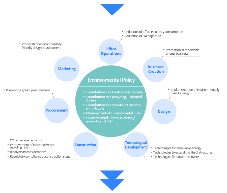 We, as a general construction company that connects people and communities, contribute to the realization of a sustainable society by improving the quality of life and reducing environmental impact.
